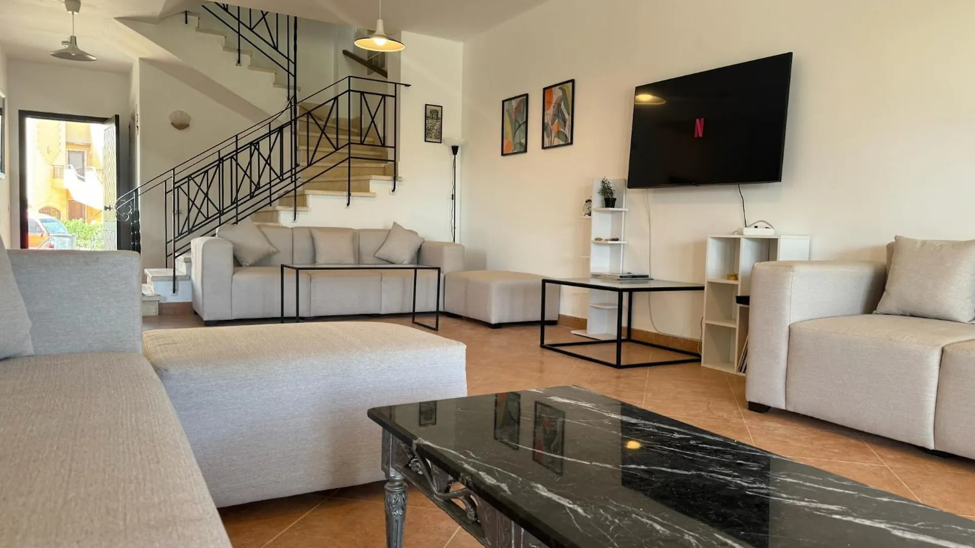 5Bdr Modern Beachside Retreat In Einbay L 2Nd Row Ain Sukhna apartment is located 1.4 miles from Blumar El-Sokhna and a 20-minute walk from Tulip Resort Ain El-Sokhna Public Beach. Offering a terrace, this 4-bedroom apartment also features a year-round outdoor swimming pool for guests ultimate relaxation.